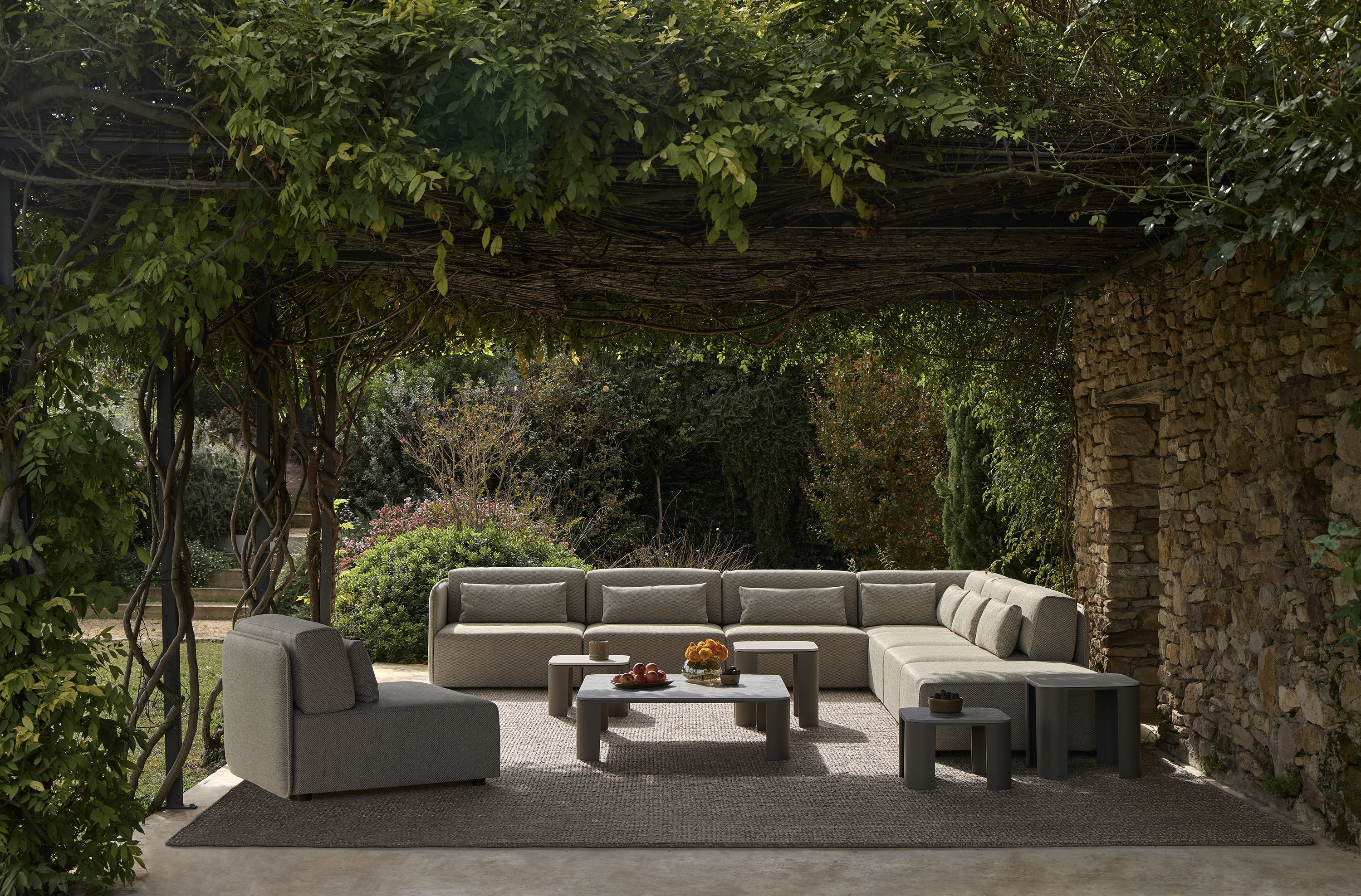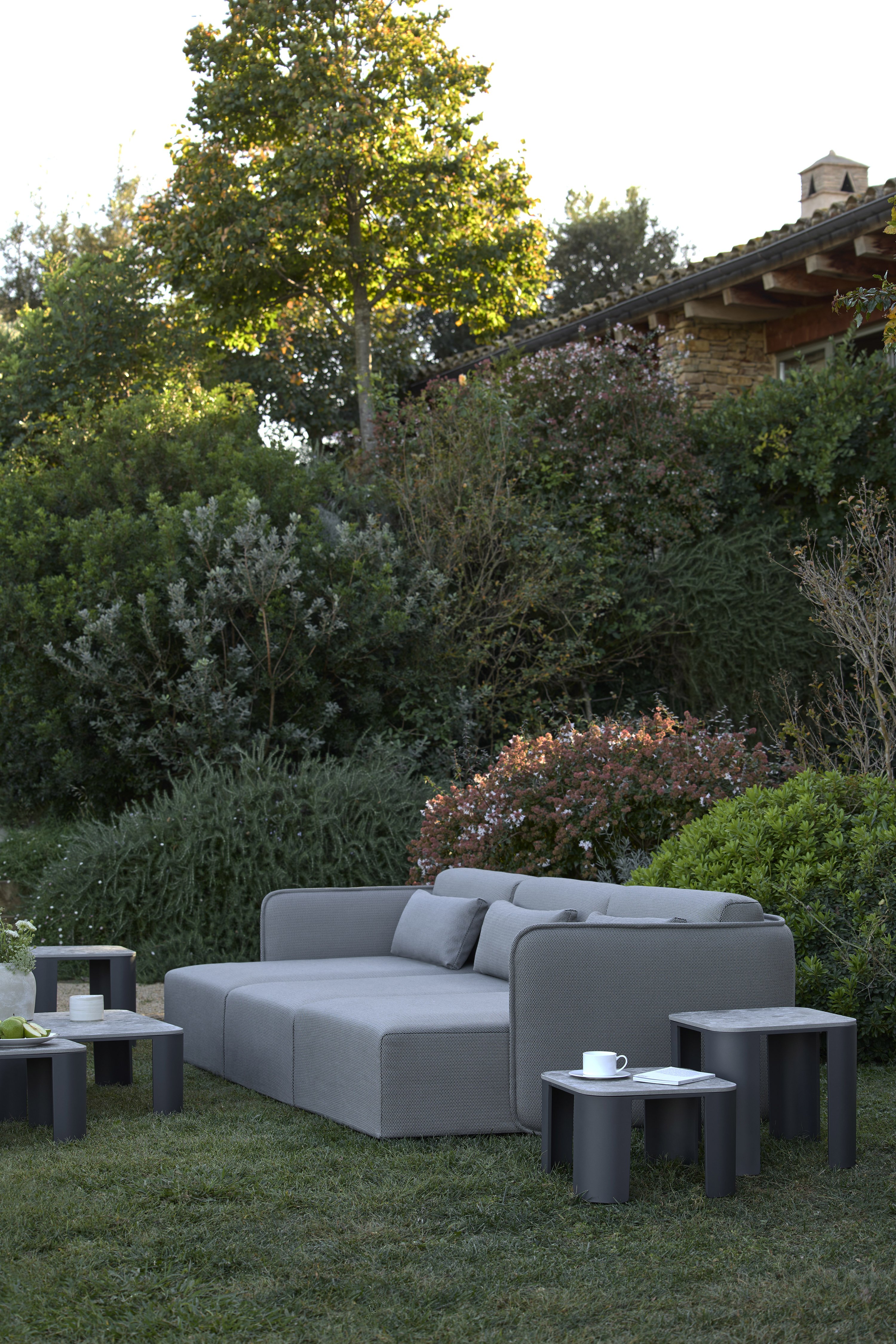 The design responds to any situation in any space, based on a very simple modular system with just three elements: an ottoman, a module with a backrest and a corner module. Combining these three elements provides an infinite number of configurations, generating relaxing outdoor environments, whether as sofas, ottomans, armchairs or complex L- or U-shaped layouts.