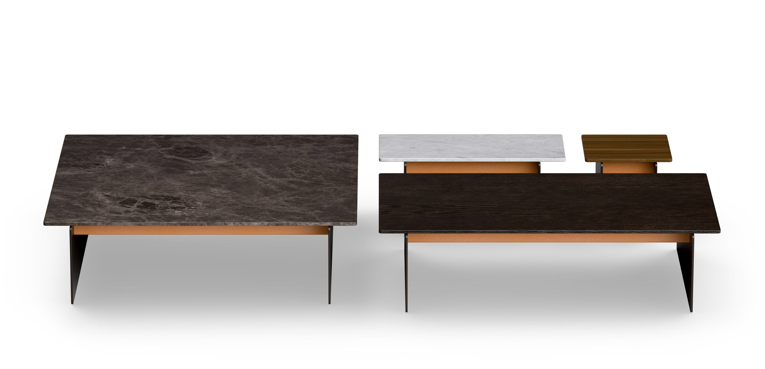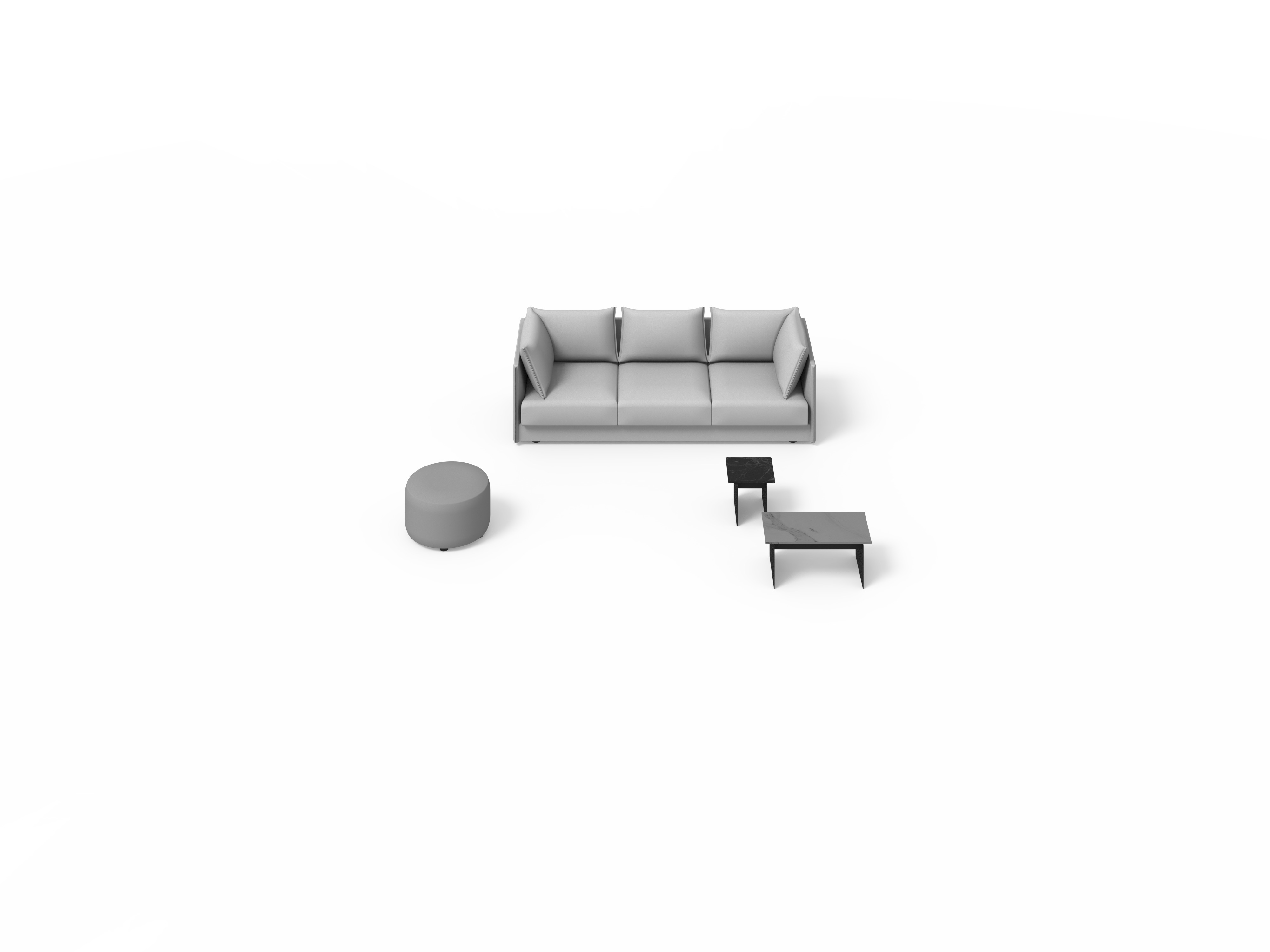 Senso’s design explores all possible compositions, allowing it to adapt effortlessly to both residential and contract or hospitality environments. For the base, you can choose between a floor-level version or one with legs. For the arms, three different designs are offered – or you can opt for a tray instead of an arm. The seat can be configured with a single cushion or multiple cushions. It also features a wide range of integrated trays in different materials, which can be positioned anywhere on the sofa.