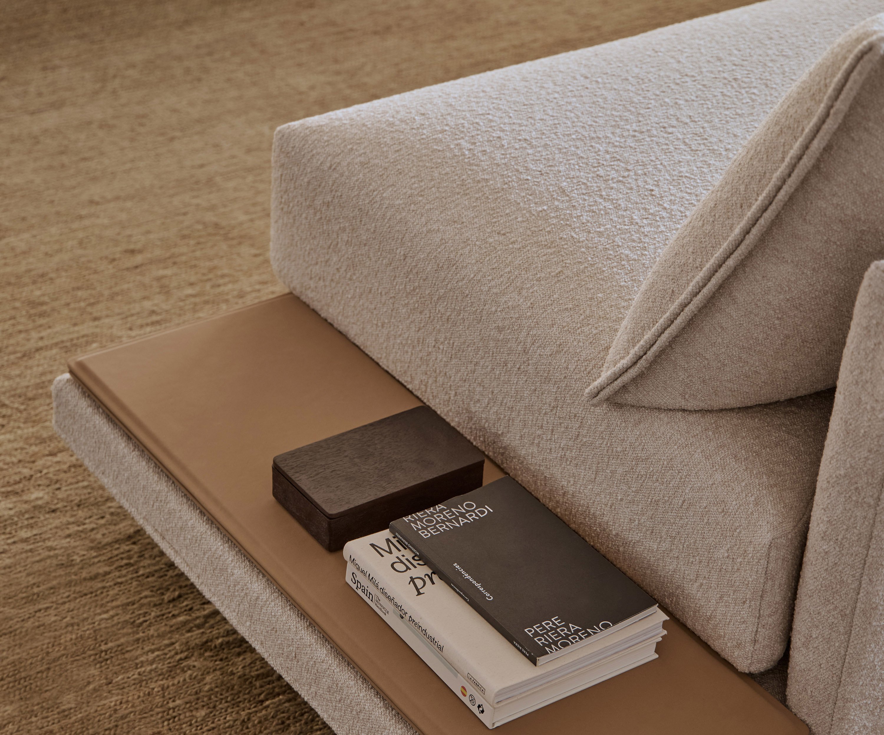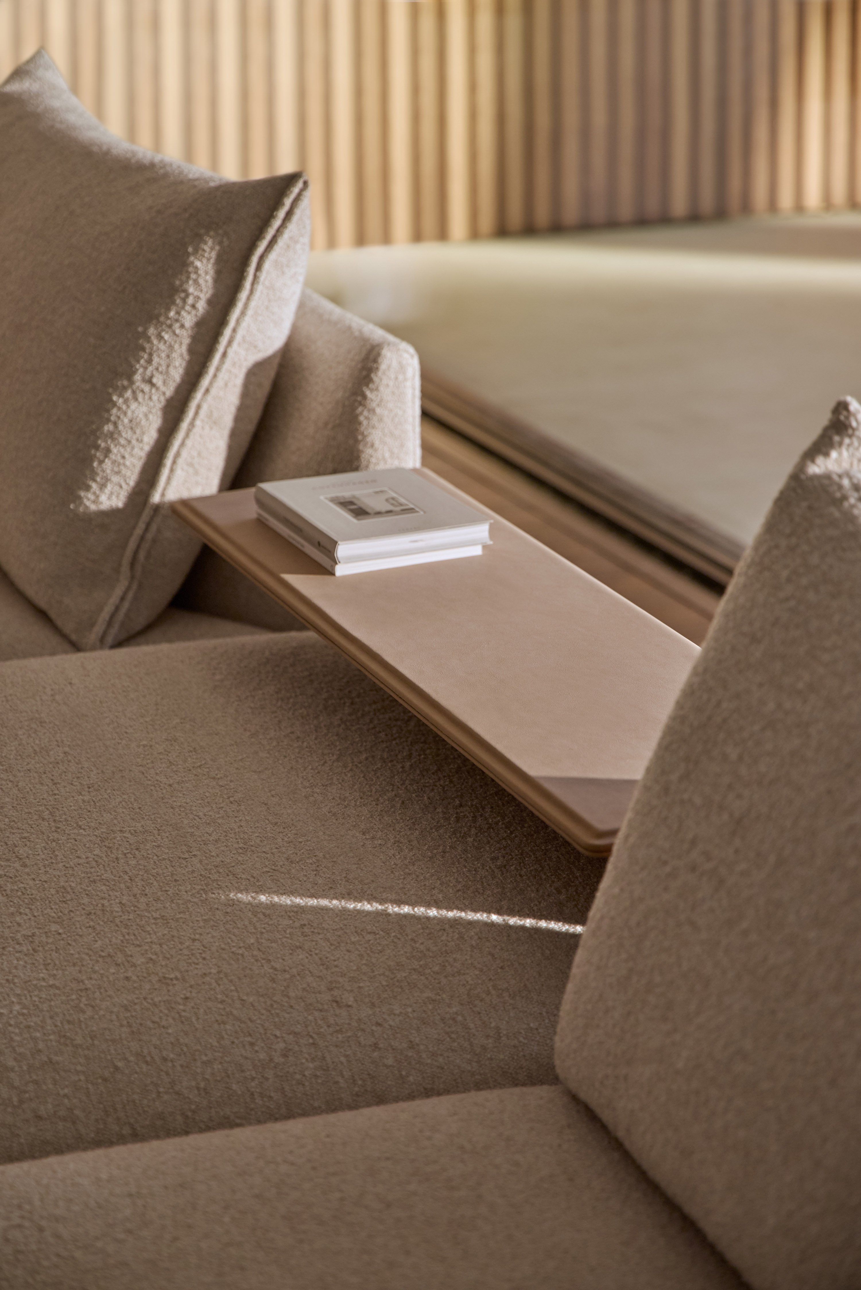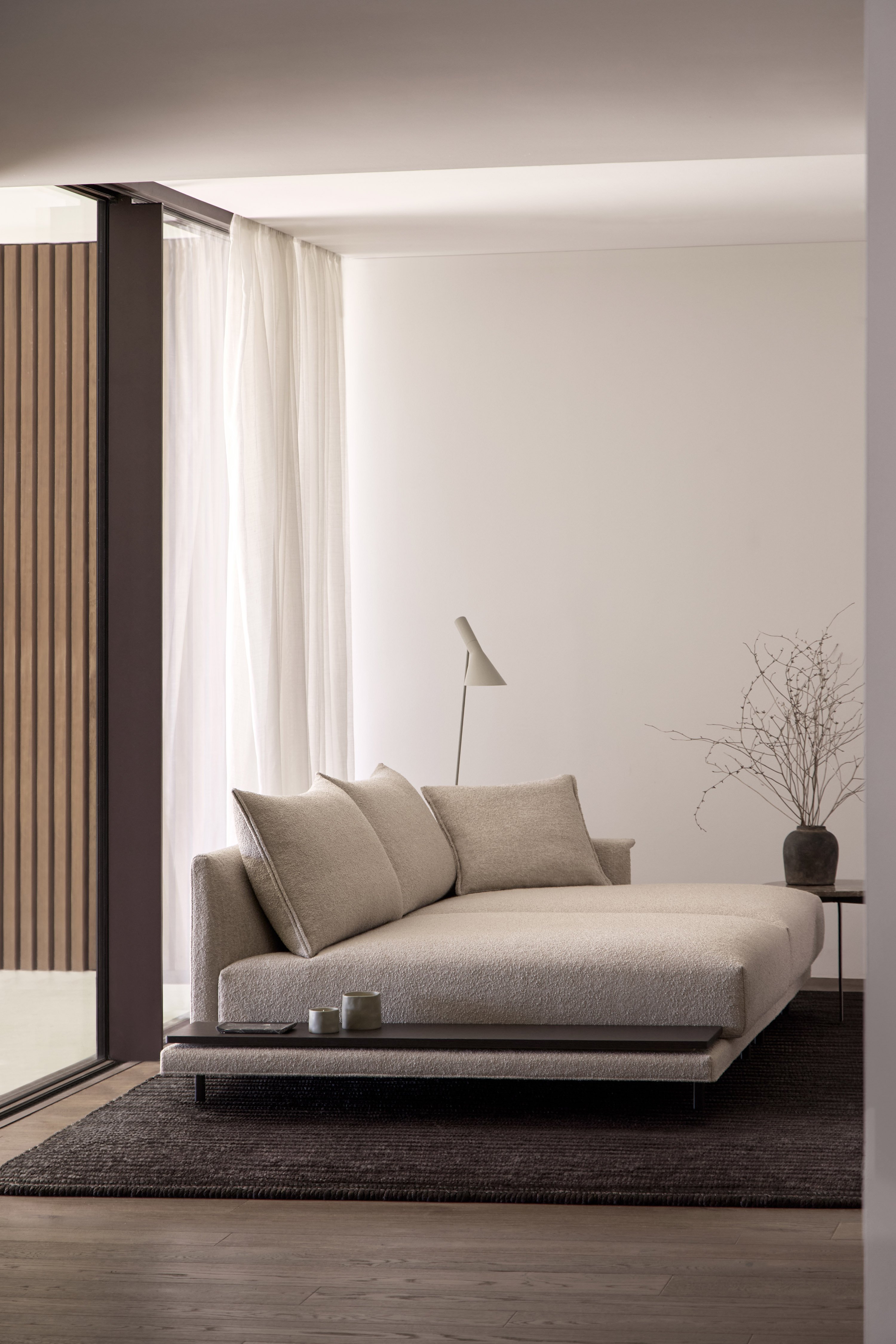 Le design de Senso explore toutes les possibilités de compositions pour s’adapter aussi bien au cadre domestique qu’à des espaces contract et hospitality. Pour la base, par exemple, vous avez le choix entre une version à poser au sol ou une version reposant sur des pieds ; trois designs différents sont disponibles pour les accoudoirs, à moins que vous ne préfériez la version plateau à la place de l’accoudoir. Le siège peut compter un seul ou plusieurs coussins. Il dispose également d’une large gamme de plateaux de différents matériaux, intégrés à la structure, à placer à différents endroits du canapé.