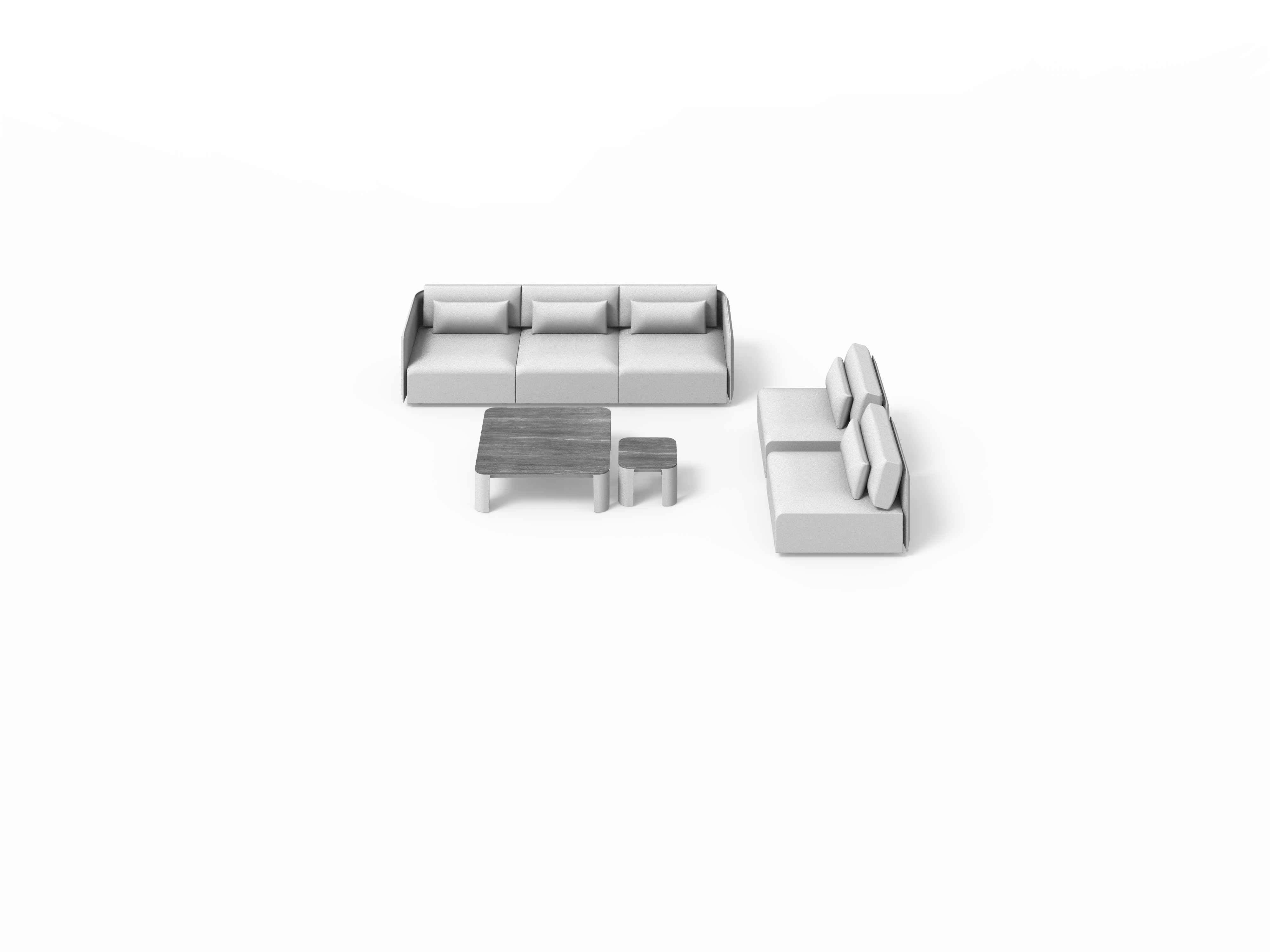 Su diseño da respuesta a cualquier situación en cualquier espacio partiendo de un sistema modular muy simple de tan solo tres elementos: un otoman, un módulo con respaldo y un módulo en esquina. Con la combinación de los tres se pueden construir infinidad de configuraciones generando relajantes ambientes al aire libre: sofás, otomanes, butacas, composiciones complejas en forma de L o de U…