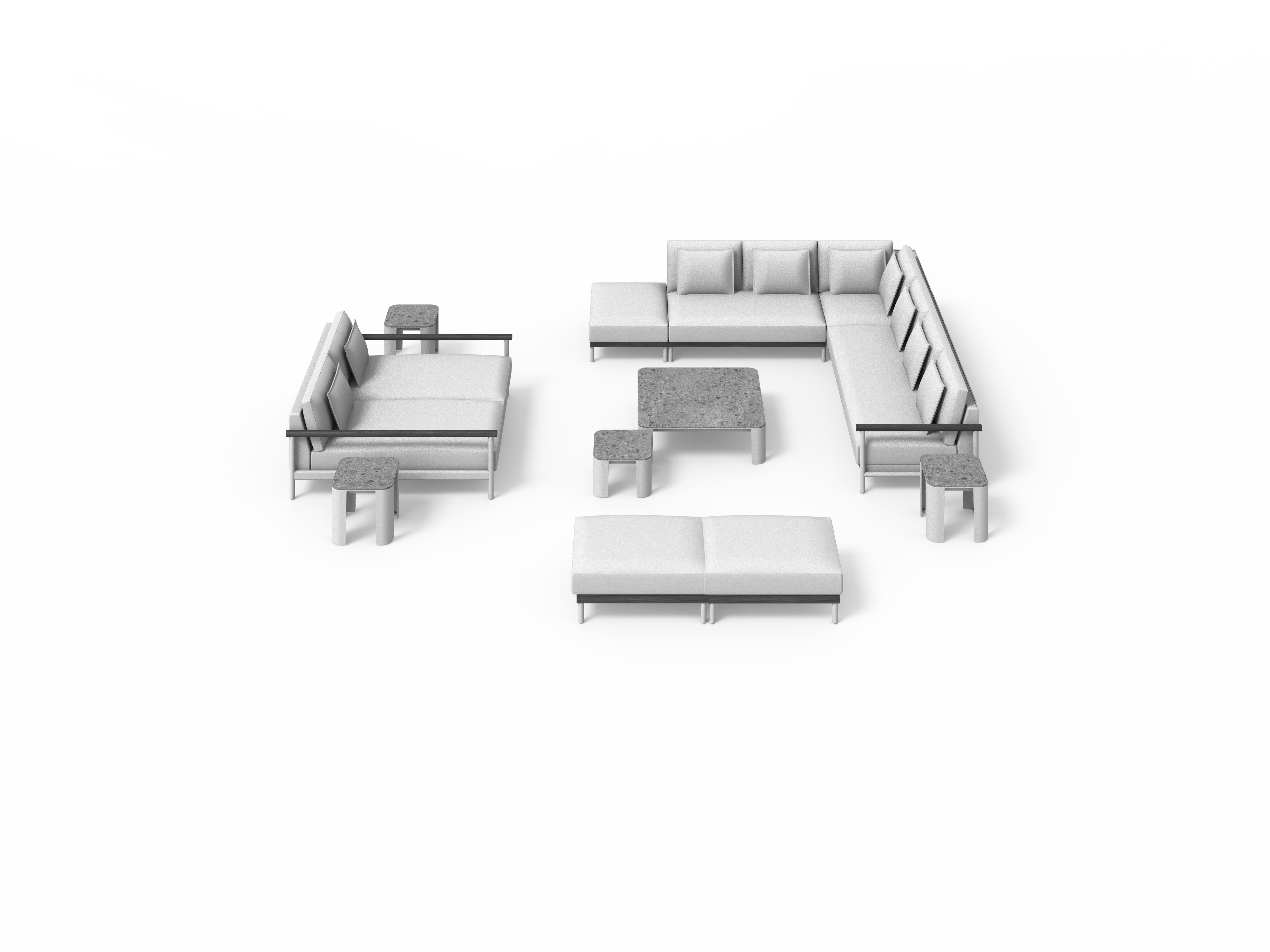 Compuesto por sofá modular, butaca y un sistema que permite una gran diversidad de configuraciones, Silence favorece una atmósfera de quietud y de elegancia atemporal en espacios de diferente escala al aire libre.